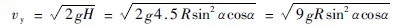 因為球是自由落體,所以到達落回點B的垂直速度為