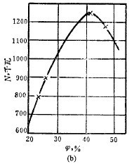 于71~75%范圍內磨機的處理能力更高,轉速率低于或高于這個范圍時處理能力便趨于降低。磨機輸入功率與轉速率的關系和生產率與轉速率的關系相似,按磨碎每噸產品的動力消耗計,則一般隨轉速率降低而減少。