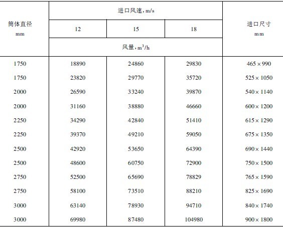 表1旋風(fēng)集塵器氣流入口速度與分離粒度的關(guān)系