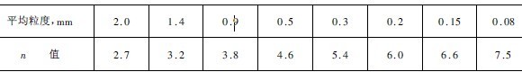 n———指數(shù),與顆粒的粒度和形狀有關(guān)(見表1和2)。