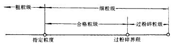 試驗(yàn)方法中的一個(gè)重要問(wèn)題在于,如何判定磨礦效果的好壞。就以生產(chǎn)率而論,達(dá)不到指定級(jí)別(如0.074mm或其它粒度)的稱為“粗級(jí)別”,達(dá)到指定級(jí)別及以下的稱為“細(xì)級(jí)別”,而細(xì)級(jí)別中又包含“過(guò)粉碎”級(jí)別,幾者之間的關(guān)系可表示在圖3-5-2中。