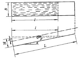 (b)分級(jí)機(jī)結(jié)構(gòu)———分級(jí)機(jī)中礦粒群沉降的液面面積,稱為分級(jí)面積。分級(jí)面積的大小影響分級(jí)機(jī)處理能力并決定分級(jí)粒度。由于分級(jí)過程是發(fā)生在靠近表面層的水平礦漿流中,如3-4-16所示。礦粒在這層水平流中,一方面以自身的沉降速度v向下沉降,同時(shí)又被水平介質(zhì)流帶動(dòng),以接近礦漿水平流速u的速度向溢流端行進(jìn)。因此,它的運(yùn)動(dòng)方向是兩個(gè)速度的矢量和。粒度不同的兩個(gè)礦粒(假定密度和形狀相同)處于同一分級(jí)槽中,其水平流速一致,而兩礦粒沉降速度有別,于是合速度與水平面的夾角β也有差異。粗顆粒的β角大,運(yùn)行到分級(jí)槽終端被溢流堰擋住,故留在槽內(nèi)而成沉砂,細(xì)顆粒的β角小,運(yùn)行到分級(jí)槽終端時(shí),依然位于溢流堰上面,隨水平流從溢流口排出機(jī)外。