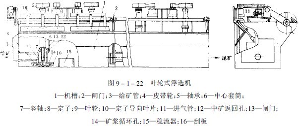 如圖9-1-19所示,礦漿由給礦箱均勻地流入選礦槽,礦漿中的磁性礦物受到磁力吸引,附著于圓筒上。由于磁極極性交替排列,所以吸附在圓筒上的磁性礦物一邊隨著圓筒旋轉,一邊進行磁翻轉。附著在圓筒上的磁性礦物經過幾次磁翻轉之后,使混雜在磁性礦物中的非磁性礦物在離心力和水流沖力的作用下被甩到槽底。吸附在圓筒上的磁性礦物通過脫水區8,脫離磁場,被水沖下后經精礦管排出槽體外。粗粒尾礦沿掃選區6經槽底11從尾礦管7流出。