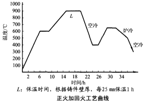 7精整與熱處理:開箱以后盡快清理冒口根部殘砂,保證在100℃以上熱割冒口。清砂時不能用風鏟直接與鑄件表面接觸,防止損傷鑄件表面。按照下圖所示的熱處理工藝曲線,將試塊和鑄件同爐進行熱處理。